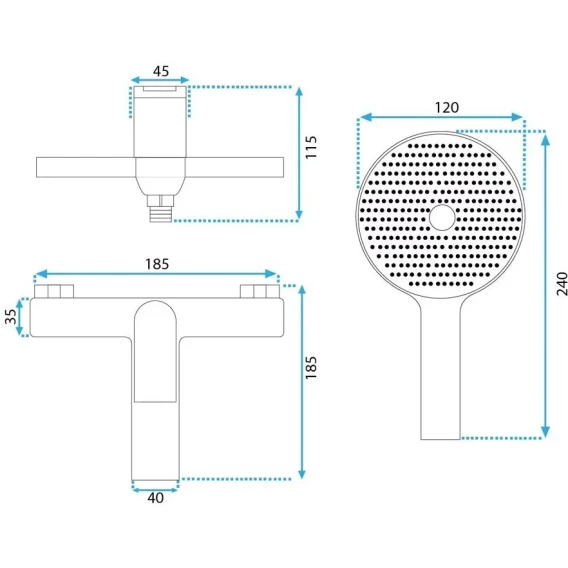 Аэратор, Металлическая розетка, Эксцентрики, Душевой шланг, Душевая лейка, Держатель для душевой лейки
