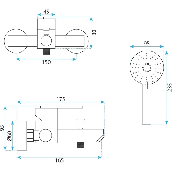 Аэратор, Металлическая розетка, Эксцентрики, Душевой шланг, Душевая лейка, Держатель для душевой лейки