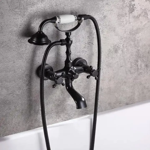 Смеситель для ванны Rea Rustico REA-B0701 с душевым гарнитуром, черный матовый
