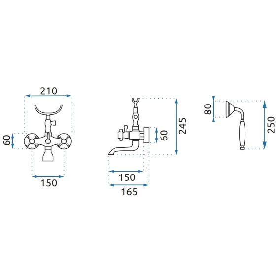 Аэратор, Металлическая розетка, Эксцентрики, Душевой шланг, Душевая лейка, Держатель для душевой лейки
