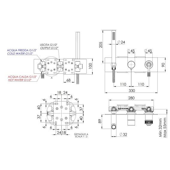 Душевой шланг, Душевая лейка, Подключение для душевого шланга с держателем, Скрытая монтажная часть