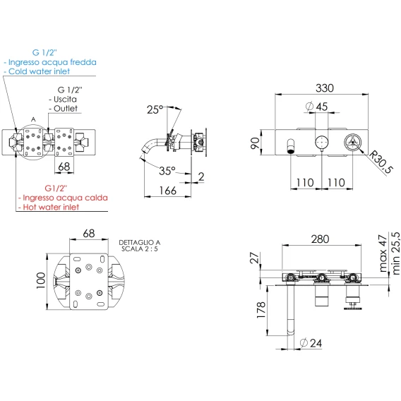 Смеситель для ванны Remer Chrono CH54D2BO встраиваемый, белый матовый