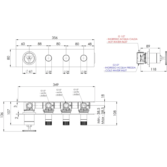 Смеситель для ванны Remer Chrono CH98D4PXV встраиваемый, нержавеющая сталь