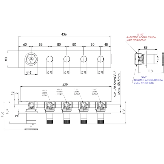 Смеситель для ванны Remer Chrono CH98D4PXV встраиваемый, нержавеющая сталь