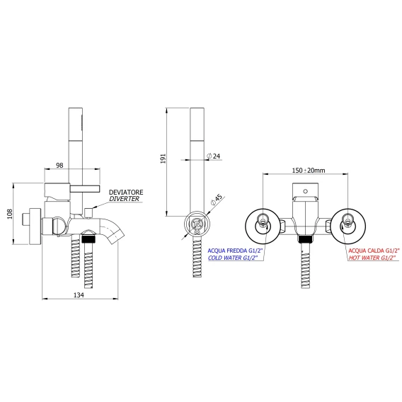 Аэратор, Металлическая розетка, Эксцентрики, Душевой шланг, Душевая лейка, Держатель для душевой лейки