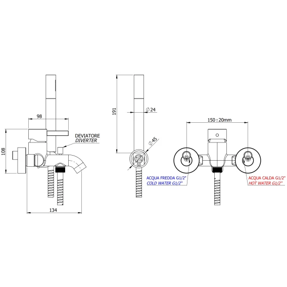 Смеситель для ванны Remer Metrica MC02NO с душевым гарнитуром, черный матовый