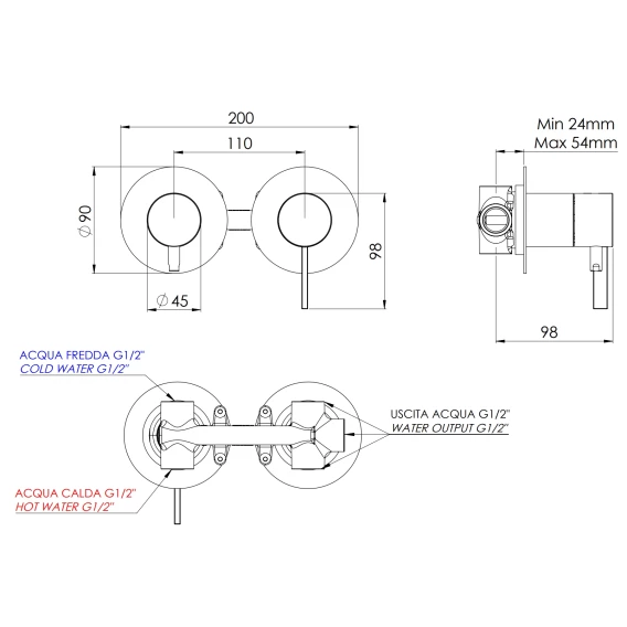 Смеситель для ванны Remer Metrica MC93ZP встраиваемый, хром