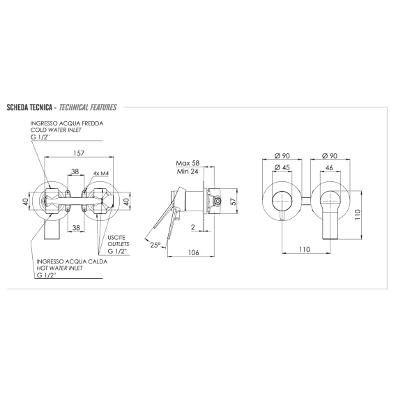 Смеситель для ванны Mariani Essenza B00173ES00 встраиваемый, хром