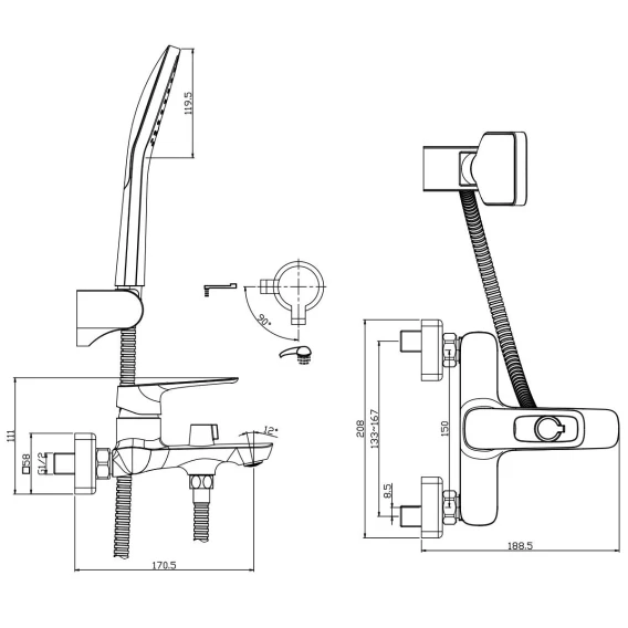 Аэратор, Металлическая розетка, Эксцентрики, Душевой шланг, Душевая лейка, Держатель для душевой лейки