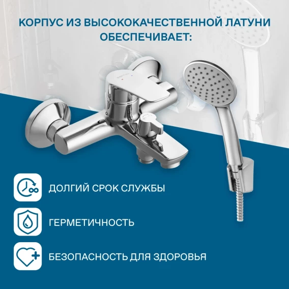 Аэратор, Металлическая розетка, Эксцентрики, Душевой шланг, Душевая лейка, Держатель для душевой лейки