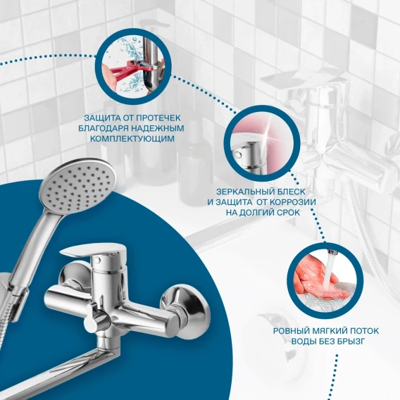 Аэратор, Металлическая розетка, Эксцентрики, Душевой шланг, Душевая лейка, Держатель для душевой лейки
