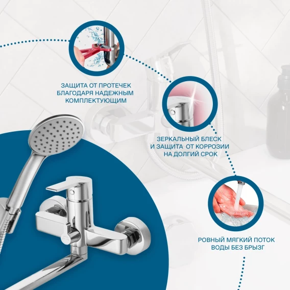Аэратор, Металлическая розетка, Эксцентрики, Душевой шланг, Душевая лейка, Держатель для душевой лейки