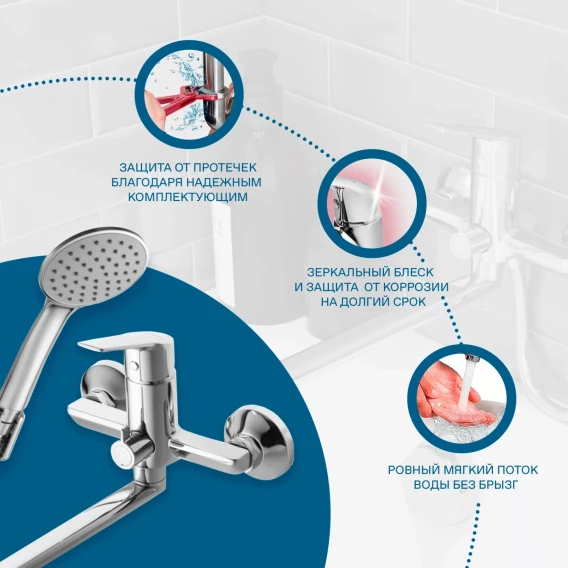 Аэратор, Металлическая розетка, Эксцентрики, Душевой шланг, Душевая лейка, Держатель для душевой лейки