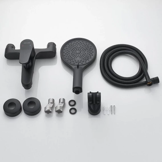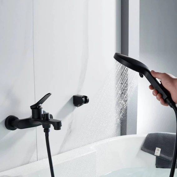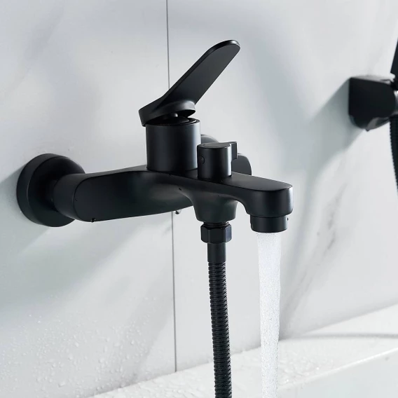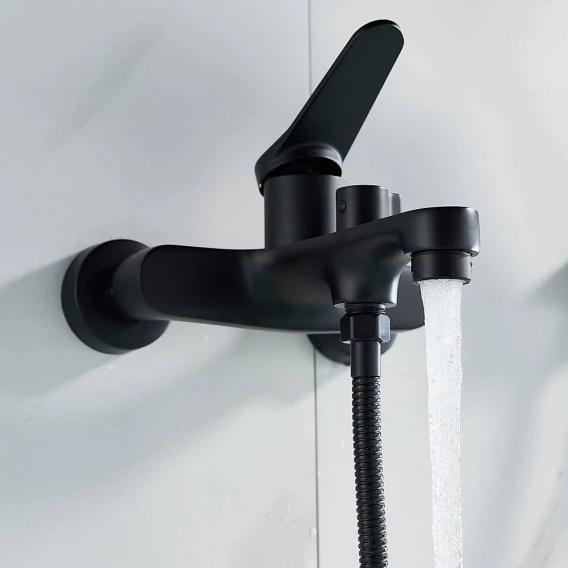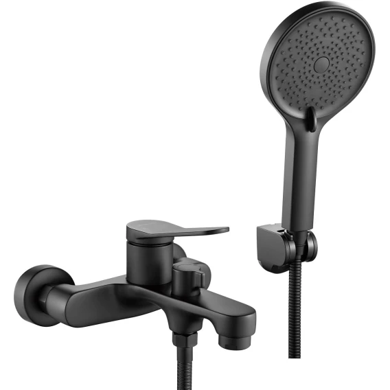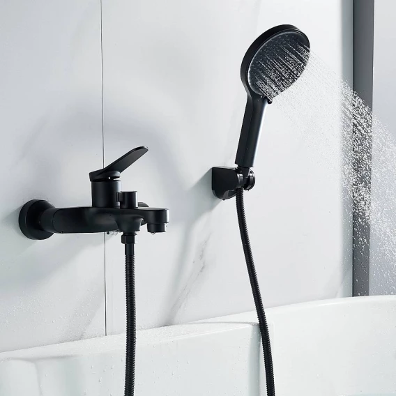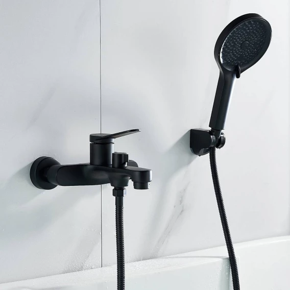 Смеситель для ванны Shevanik S6202H с душевым гарнитуром, черный матовый