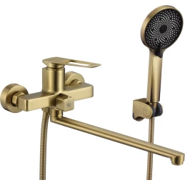 Смеситель для ванны Shevanik S9922G универсальный, с душевым гарнитуром, золотой матовый