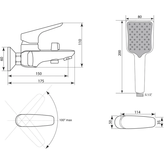 Аэратор, Металлическая розетка, Эксцентрики, Душевой шланг, Душевая лейка, Держатель для душевой лейки