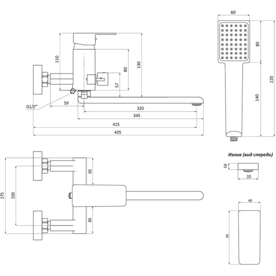 Аэратор, Металлическая розетка, Эксцентрики, Душевой шланг, Душевая лейка, Держатель для душевой лейки