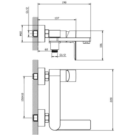 Смеситель для ванны Splenka S06.30 с душевым гарнитуром, хром