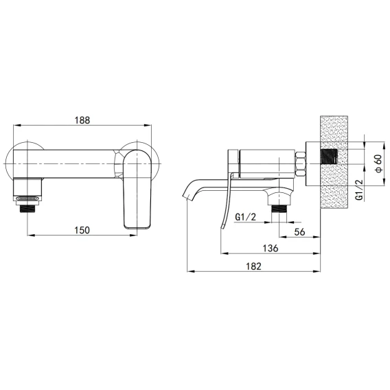 Смеситель для ванны Belz B60613-7 с душевым гарнитуром, черный матовый