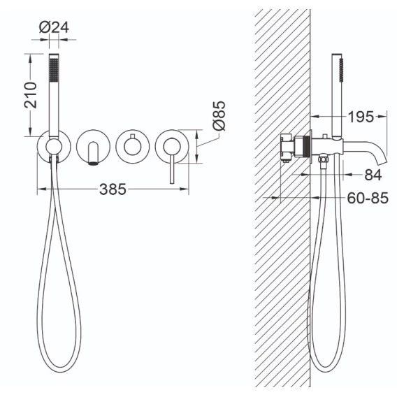 Аэратор, Душевой шланг, Душевая лейка, Подключение для душевого шланга с держателем, Излив, Скрытая монтажная часть