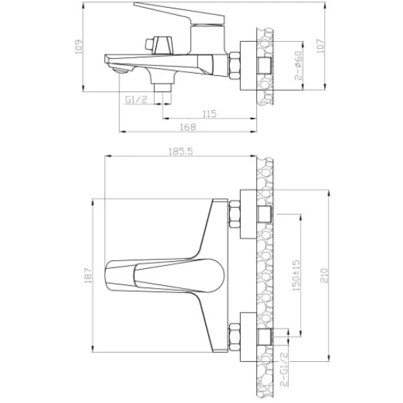 Ванна чугунная Delice Continental DLR230626R 160x70 см, с отверстиями под ручки, белый
