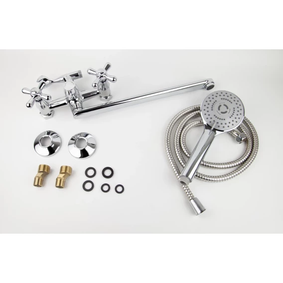Аэратор, Металлическая розетка, Эксцентрики, Душевой шланг, Душевая лейка, Держатель для душевой лейки
