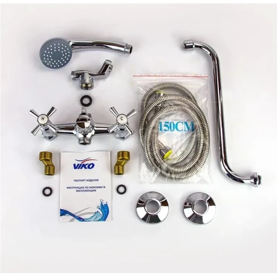 Аэратор, Металлическая розетка, Эксцентрики, Душевой шланг, Душевая лейка, Держатель для душевой лейки