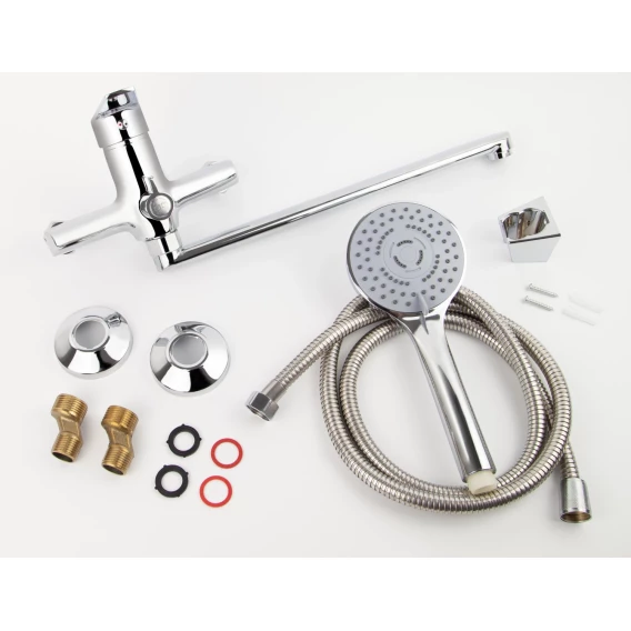 Аэратор, Металлическая розетка, Эксцентрики, Душевой шланг, Душевая лейка, Держатель для душевой лейки