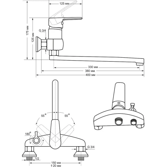 Аэратор, Металлическая розетка, Эксцентрики, Душевой шланг, Душевая лейка, Держатель для душевой лейки