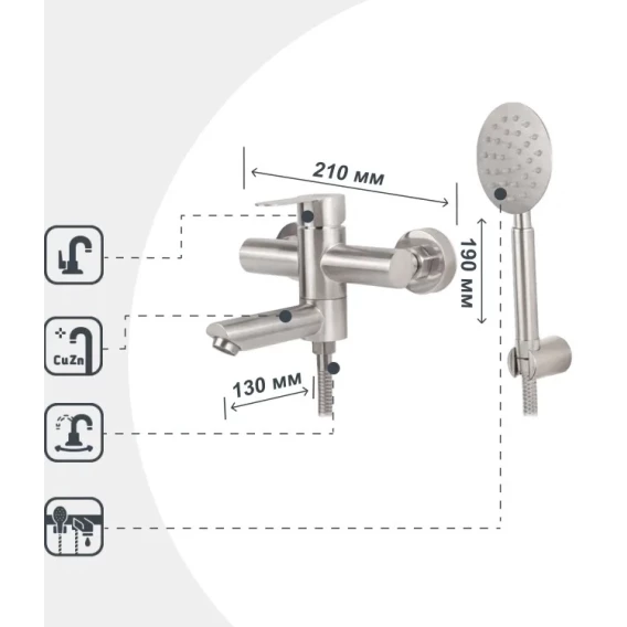 Смеситель для ванны Viko V-7502 с душевым гарнитуром, нержавеющая сталь
