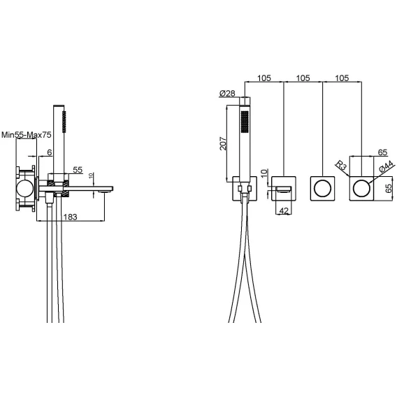 Аэратор, Душевой шланг, Душевая лейка, Подключение для душевого шланга с держателем, Излив, Скрытая монтажная часть