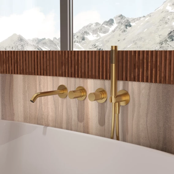 Смеситель для ванны Vincea Aura VBTW-6AU1BG встраиваемый, с душевым гарнитуром, золотой матовый
