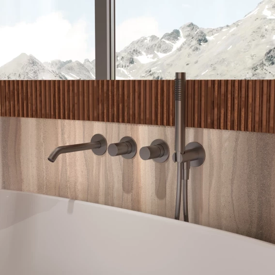 Смеситель для ванны Vincea Aura VBTW-6AU1GM встраиваемый, с душевым гарнитуром, вороненая сталь