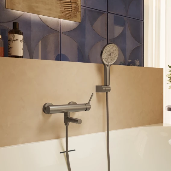 Смеситель для ванны Vincea Feerie VTFW-5FE2GM с душевым гарнитуром, вороненая сталь