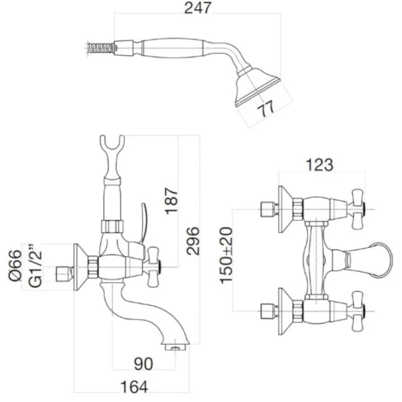 Аэратор, Металлическая розетка, Эксцентрики, Душевой шланг, Душевая лейка, Держатель для душевой лейки