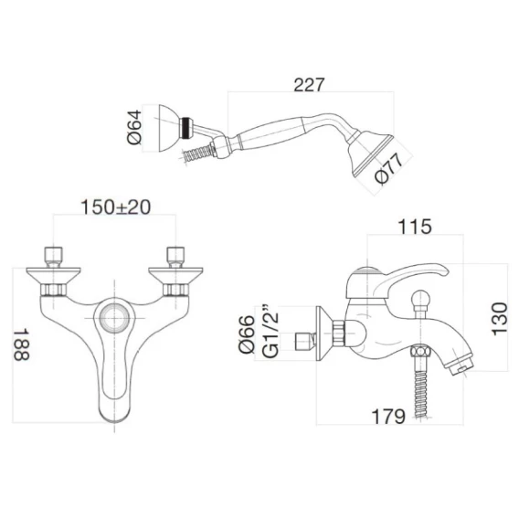 Аэратор, Металлическая розетка, Эксцентрики, Душевой шланг, Душевая лейка, Держатель для душевой лейки