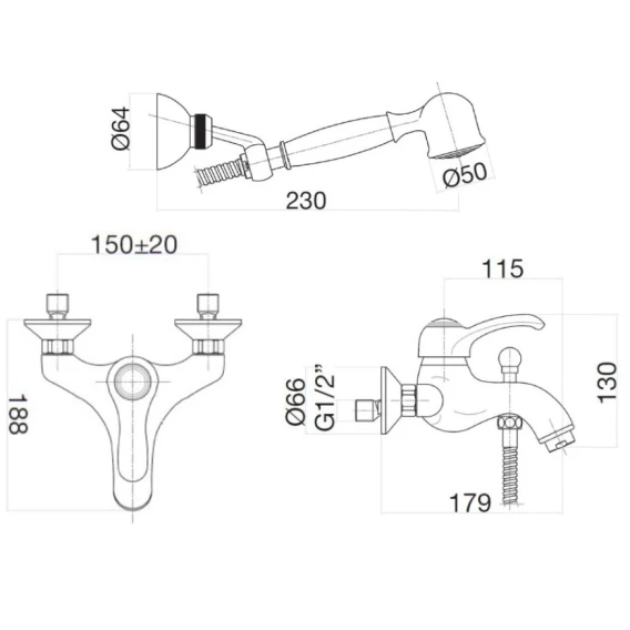 Аэратор, Металлическая розетка, Эксцентрики, Душевой шланг, Душевая лейка, Держатель для душевой лейки