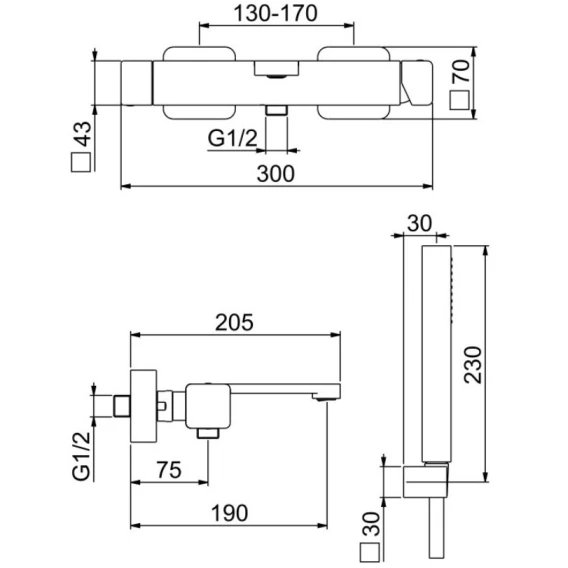 Аэратор, Металлическая розетка, Эксцентрики, Душевой шланг, Душевая лейка, Держатель для душевой лейки