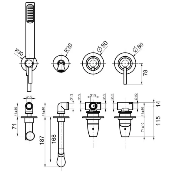 Аэратор, Душевой шланг, Душевая лейка, Подключение для душевого шланга с держателем, Излив, Скрытая монтажная часть