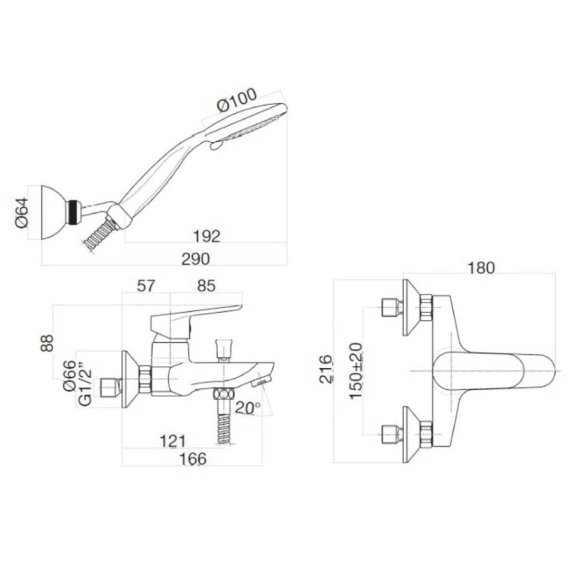 Смеситель для ванны Webert Sax Evolution SE850101015