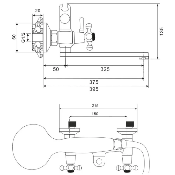 Смеситель для ванны WesnaArt Rassvet RAS02-320