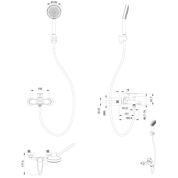 Аэратор, Металлическая розетка, Эксцентрики, Душевой шланг, Душевая лейка, Держатель для душевой лейки