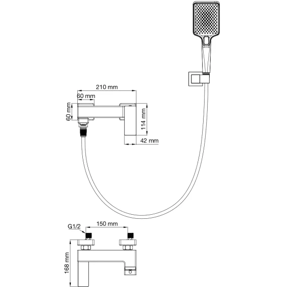 Смеситель для ванны Wonzon & Woghand Cube 2.0 WW-88037068-MB с душевым гарнитуром, черный матовый
