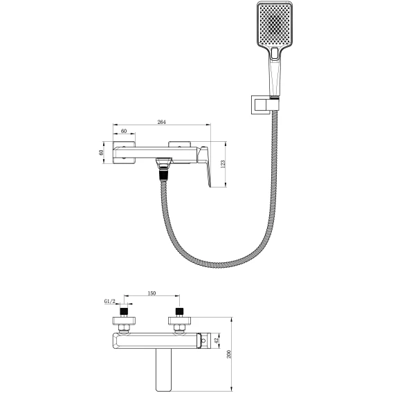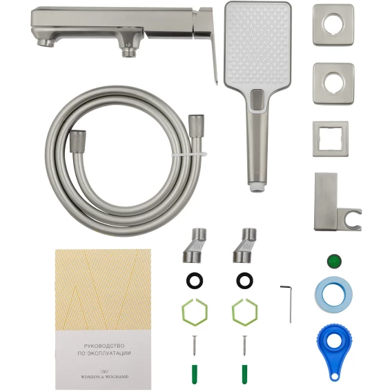 Аэратор, Металлическая розетка, Эксцентрики, Душевой шланг, Душевая лейка, Держатель для душевой лейки