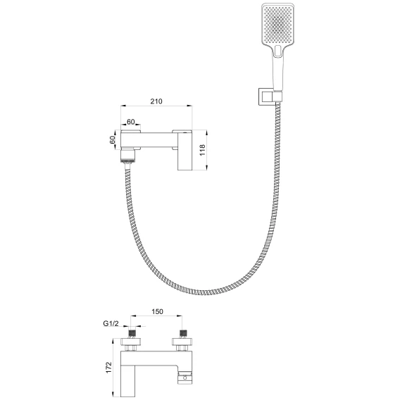Смеситель для ванны Wonzon & Woghand Fit WW-88639009-BGM с душевым гарнитуром, темный графит матовый