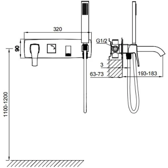 Смеситель для ванны Wonzon & Woghand Flex WW-88889072-CR встраиваемый, хром