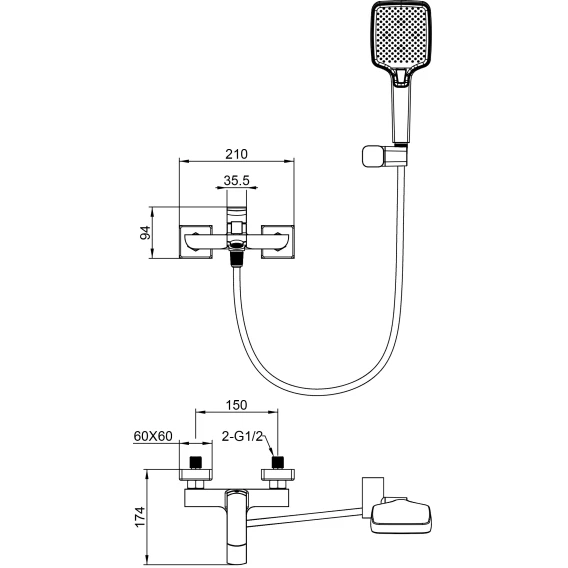 Аэратор, Металлическая розетка, Эксцентрики, Душевой шланг, Душевая лейка, Держатель для душевой лейки