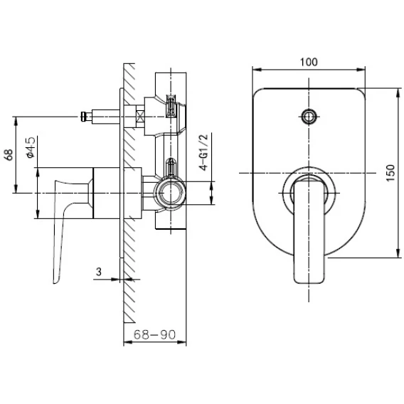 Смеситель для ванны Wonzon & Woghand Shark WW-483700-CR встраиваемый, хром