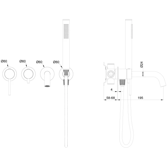 Аэратор, Душевой шланг, Душевая лейка, Подключение для душевого шланга с держателем, Излив, Скрытая монтажная часть