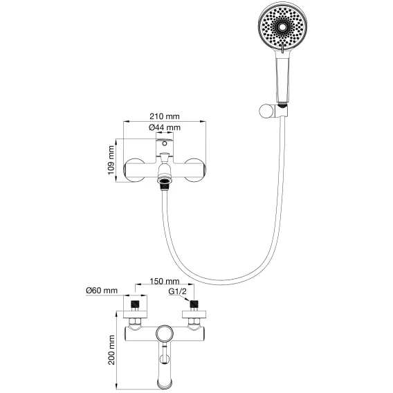 Аэратор, Металлическая розетка, Эксцентрики, Душевой шланг, Душевая лейка, Держатель для душевой лейки